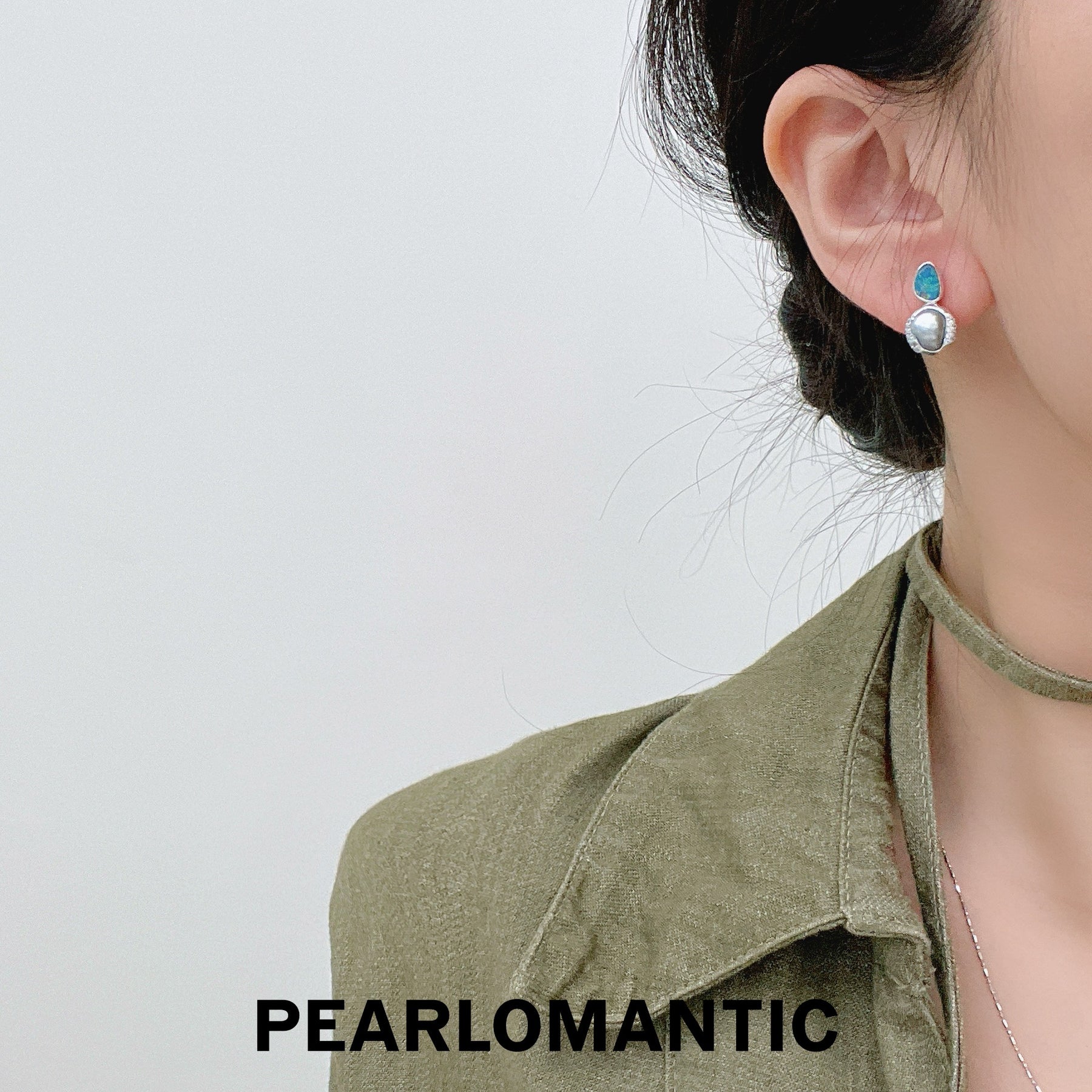 [Designer's Choice] Australian Opal Teardrop & Tahitian Keshi Pearl S925 Artisan Earrings