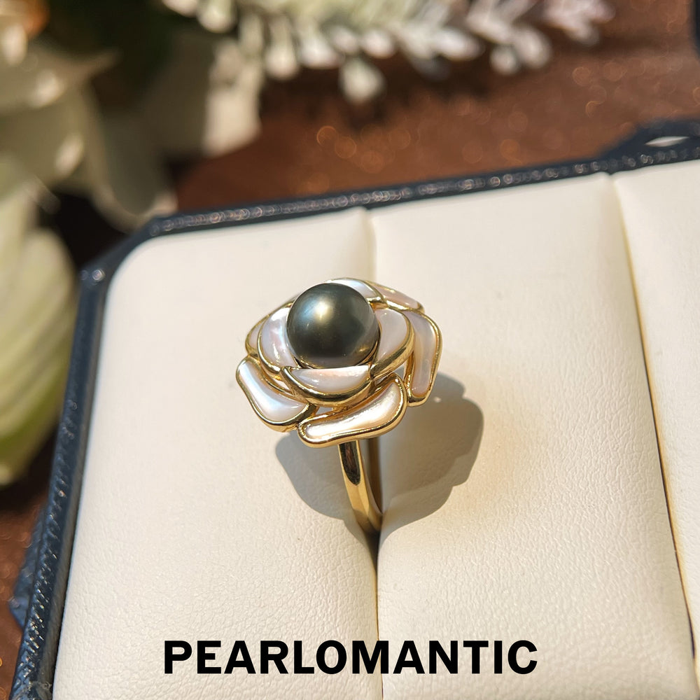 [Designer's Choice] Tahitian Black Mabe Pearl & MOP Camellia Adjustable Ring