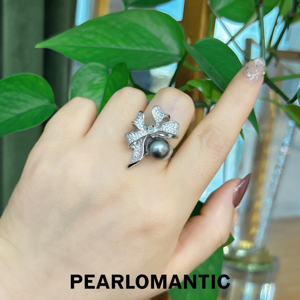 [Designer's Choice] Tahitian Black Pearl 9-10mm Bowtie Design Silver Rings