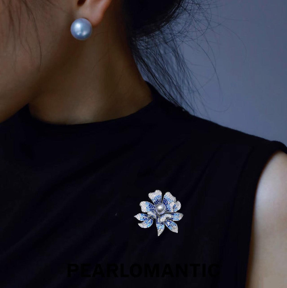 [Everyday Essentials] Tahitian Black Pearl 9-10 mm Azure Bloom Flower Brooch