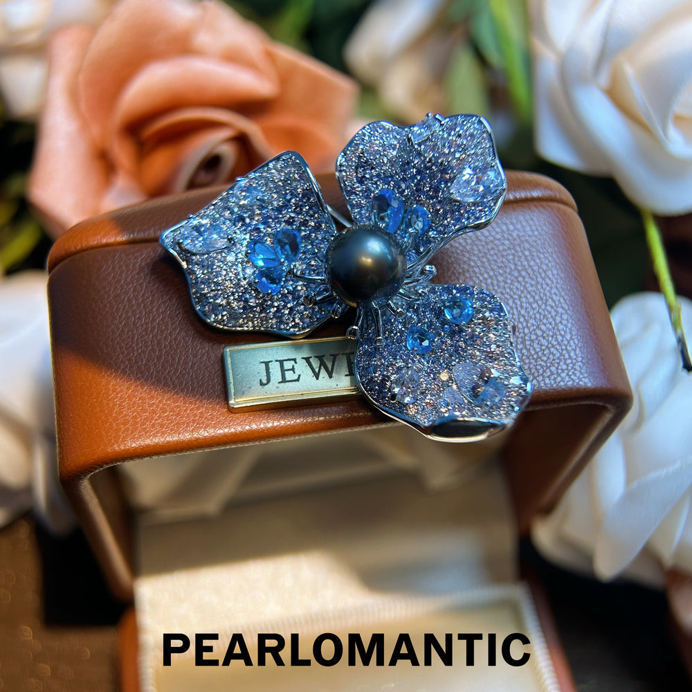 [Everyday Essentials] Tahitian Black Pearl Blue Kissed Pearl Blossom Brooch