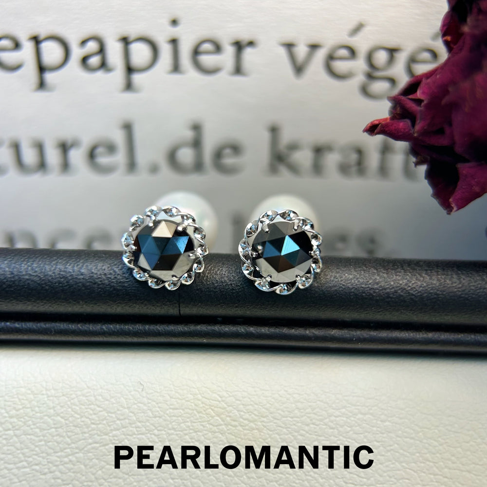 [Fine Jewelry] 18k Gold & 1ct Natural Black Diamond Earring Studs w/ Akoya 6.5-7mm 5A