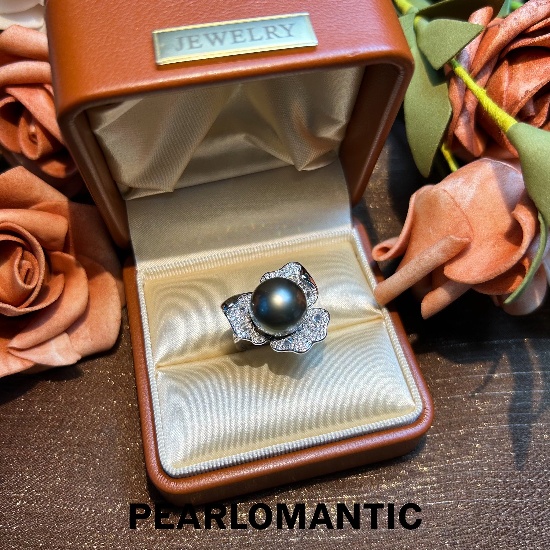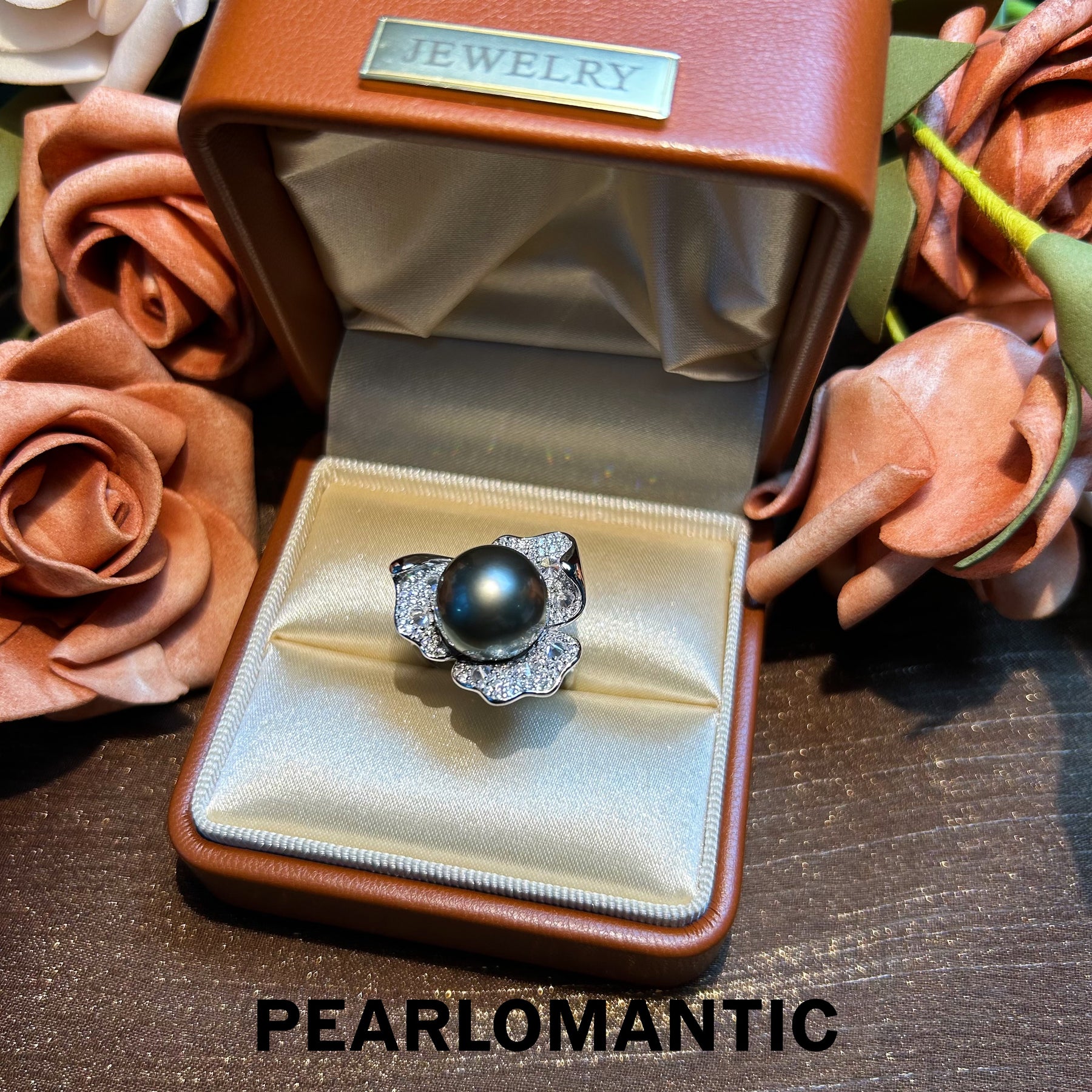 [Designer's Choice] Tahitian Black Pearl Midnight Bloom Adjustable Silver Ring