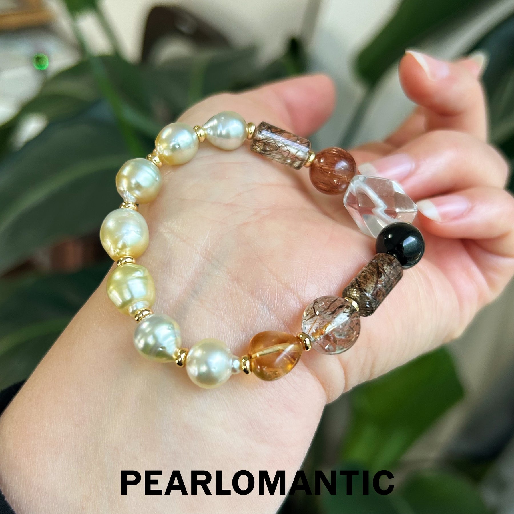[Designer's Choice] South Sea Golden Baroque Pearl & Crystal Golden Ripple Bracelet (2)