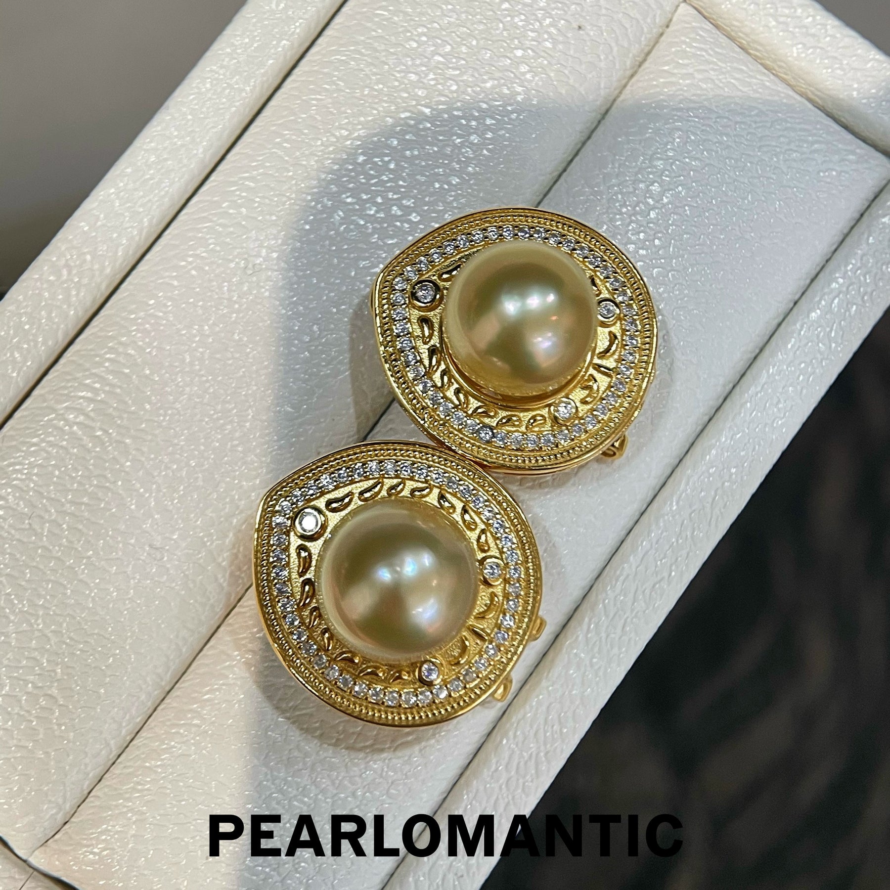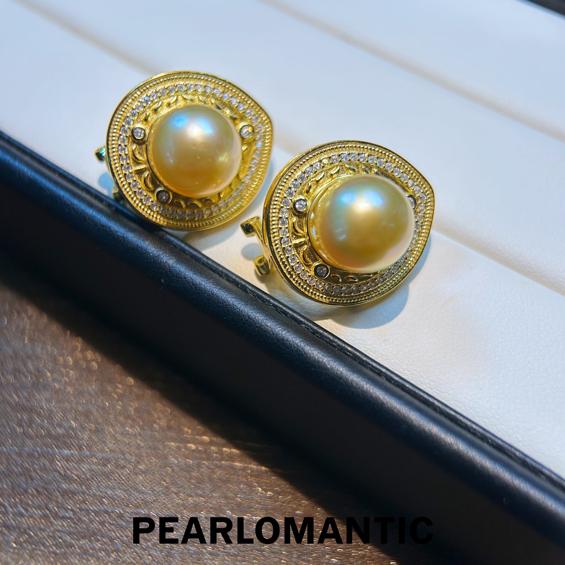 [Designer's Choice] South Sea Golden Pearl Luxury Silver Halo Earrings