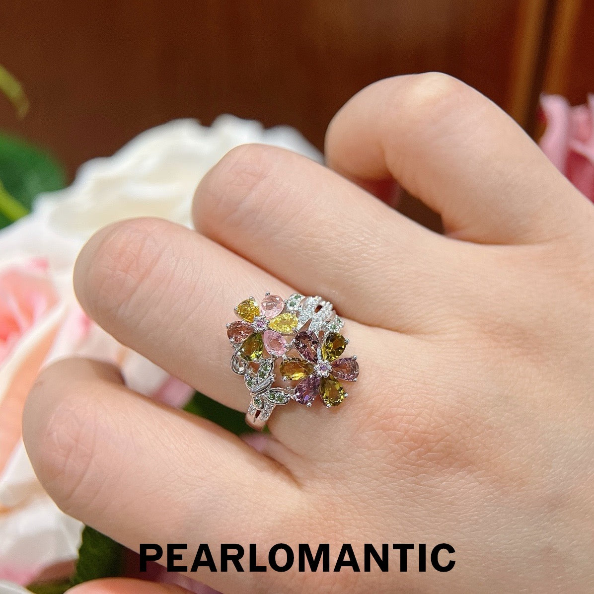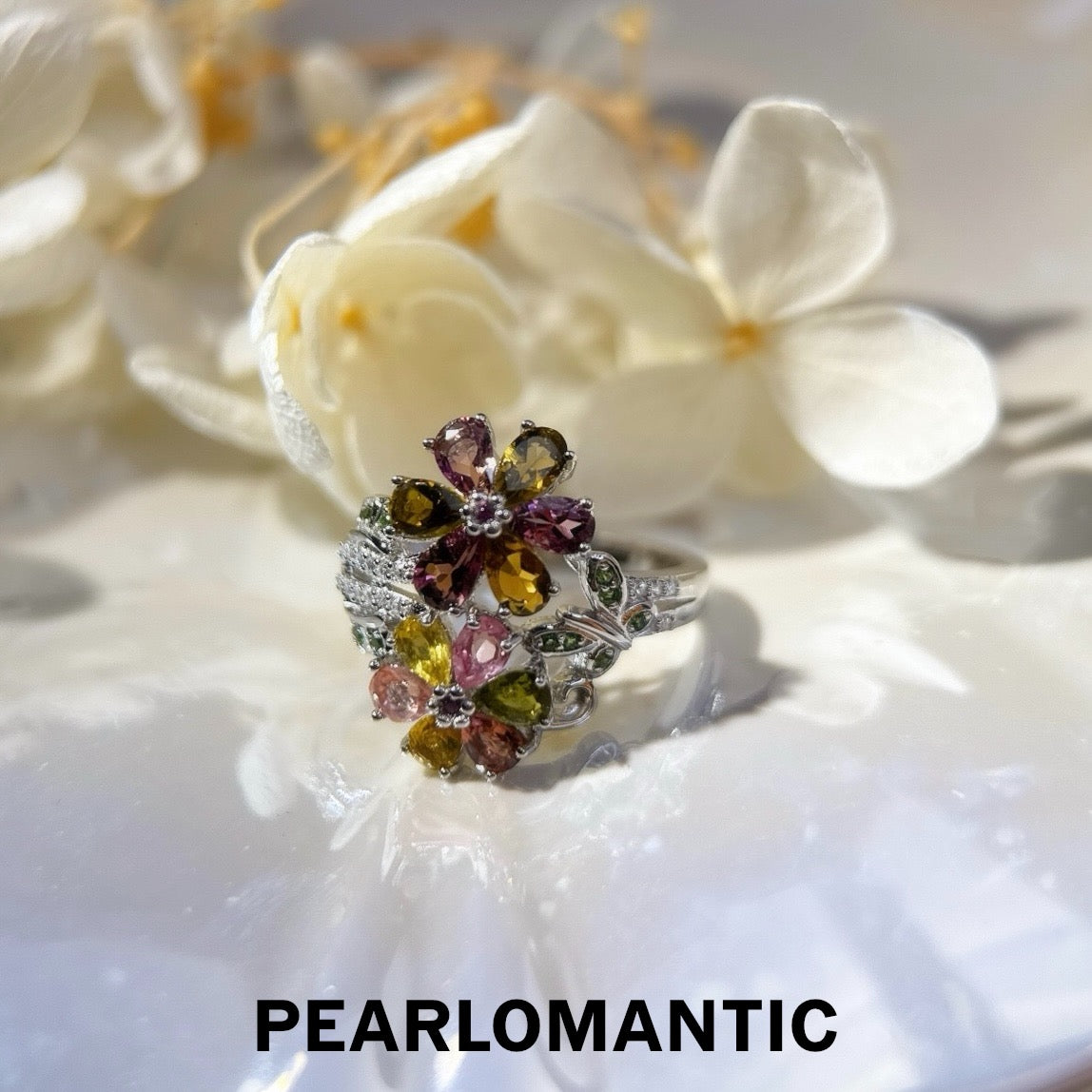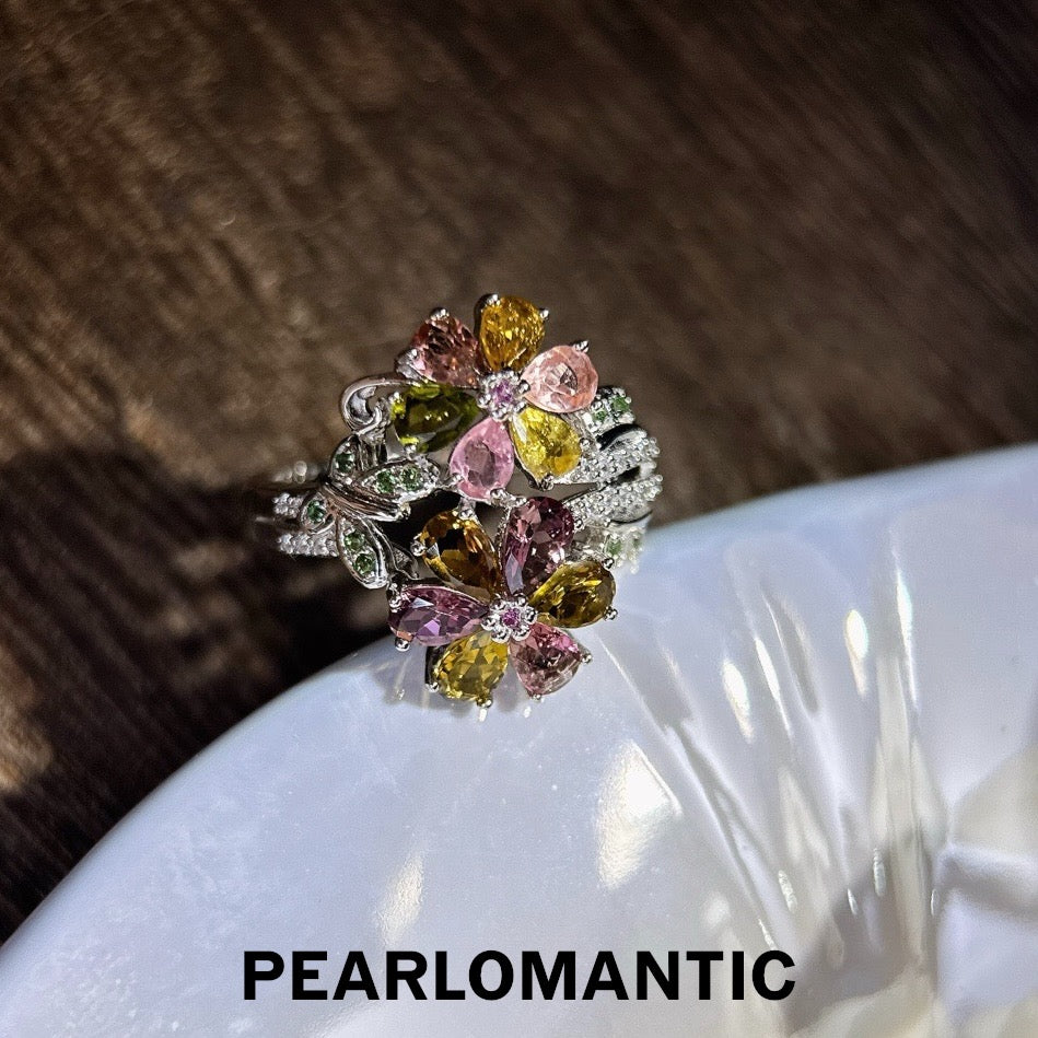 [Designer's Choice] Toumaline Natural Multi-color Kaleido-Bloom Rings w/ S925 Silver
