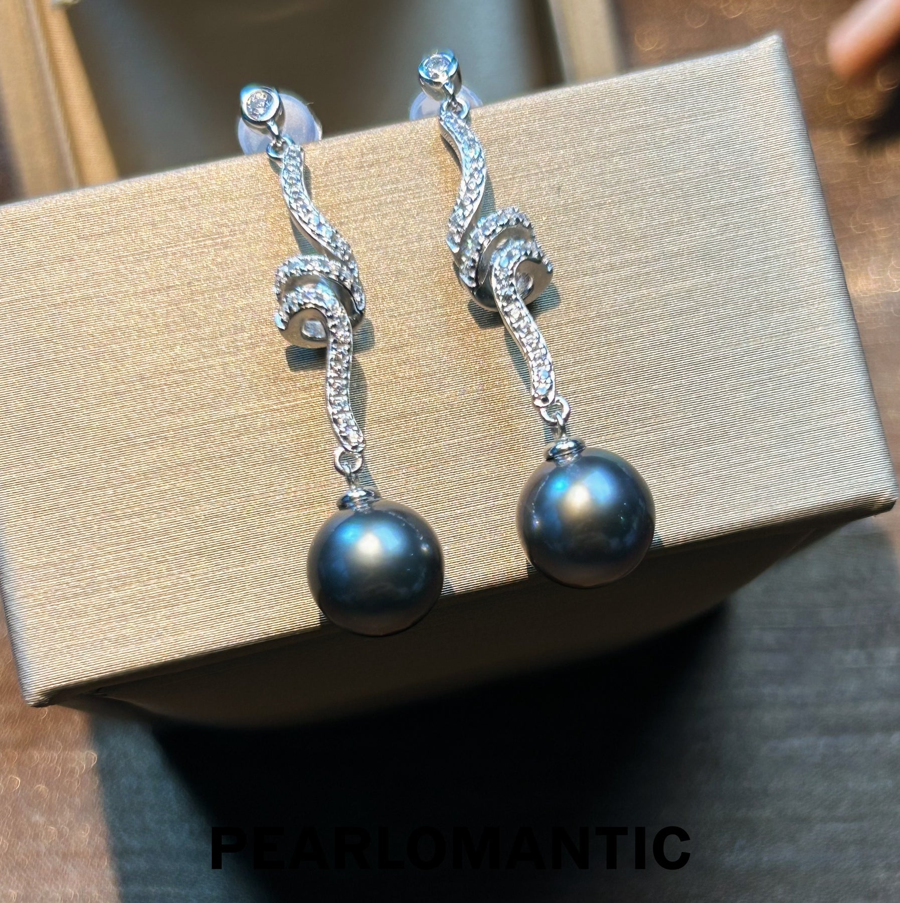 [Designer's Chioce] Tahitian Black Pearl Dazzling Curved Drop Earrings w/ S925 Silver