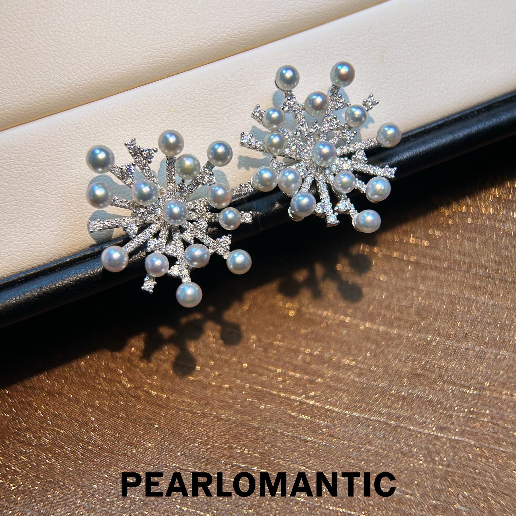 [Everyday Essentials] Akoya Pearl Silver Blue Snowflake Fireworks Earring Studs
