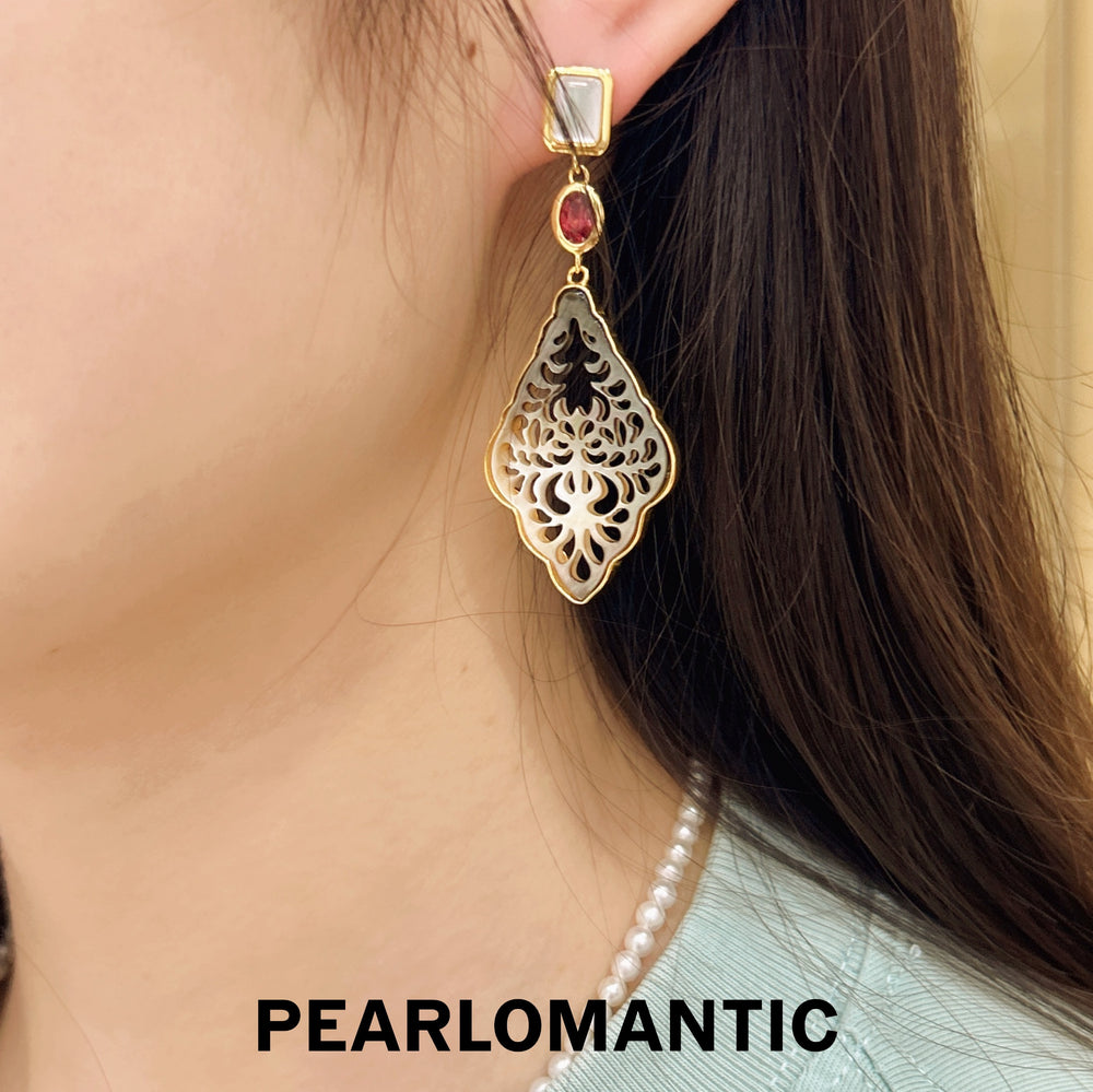 [Everyday Essnetials] Garnet w/ Black & White MOP Fancy Earring Studs