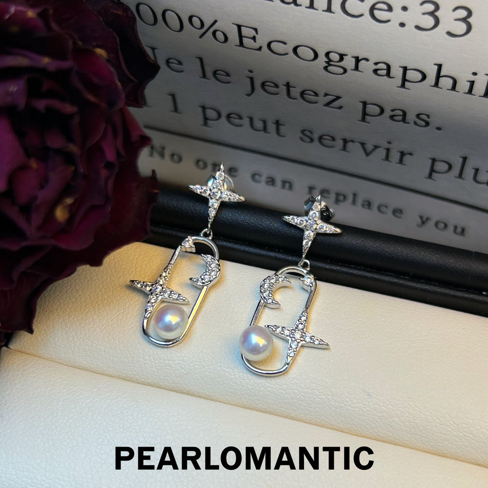 [Everyday Essential] Freshwater Pearl 4-5mm Moon&Star Earrings w/ S925
