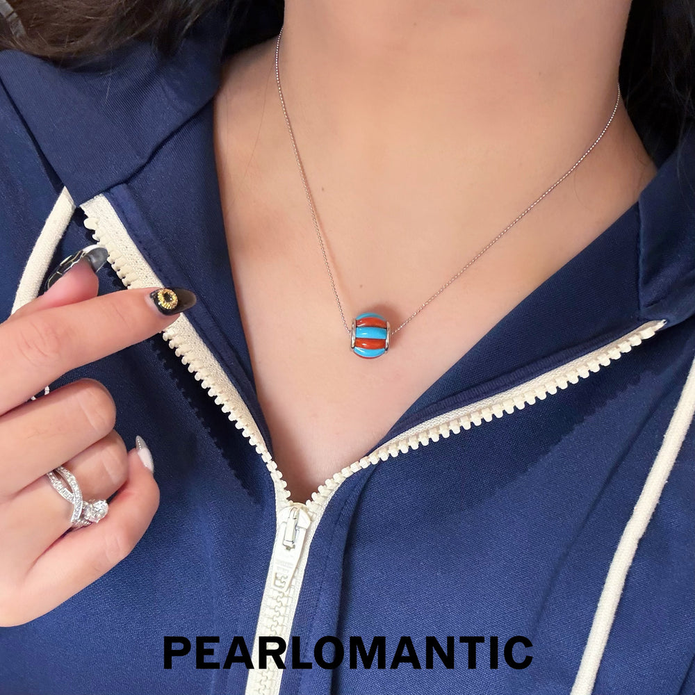 [Designer's Choice] Coral & Turquoise Ocean Harmony Sphere Pendants w/ S925 Silver