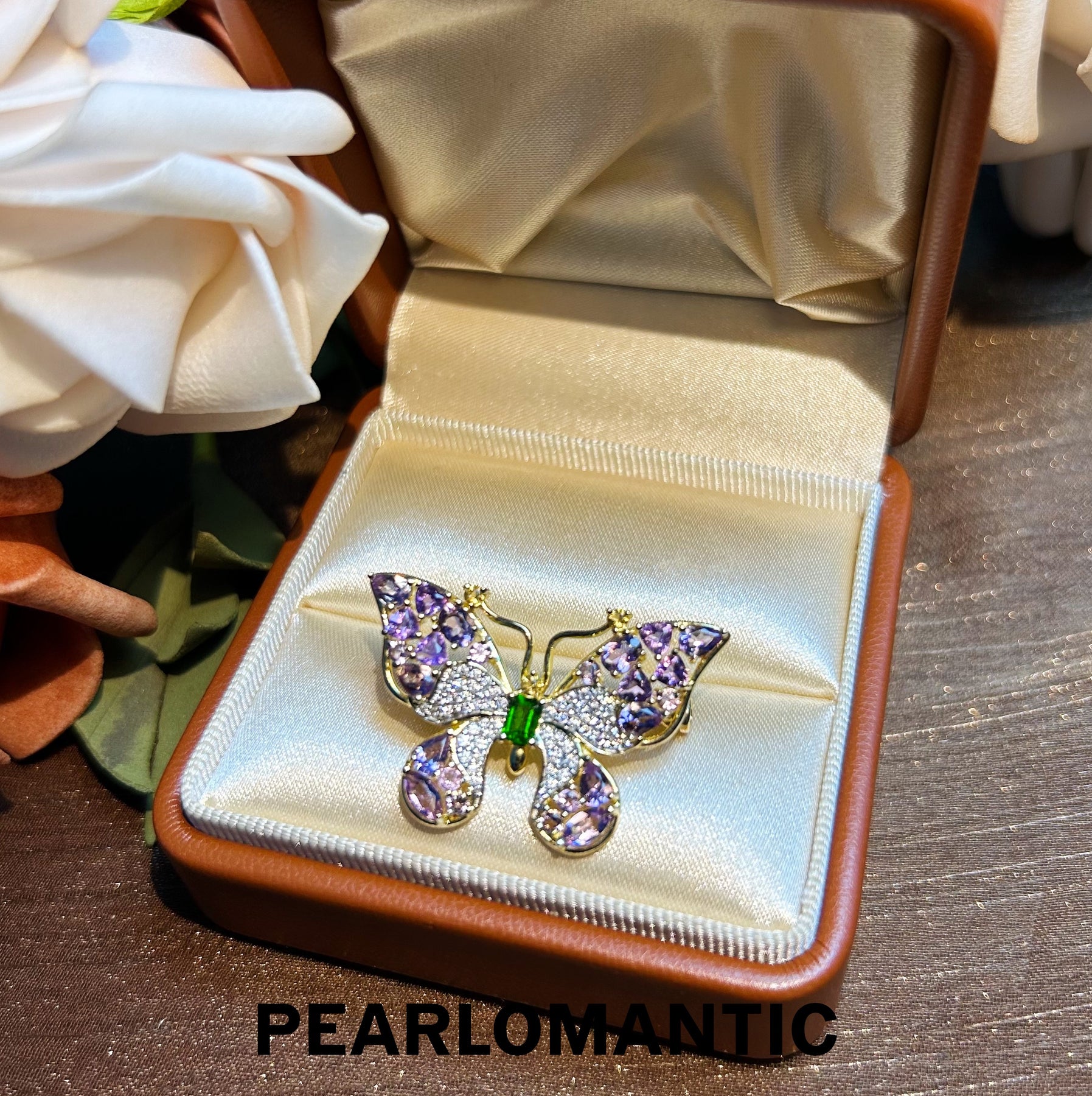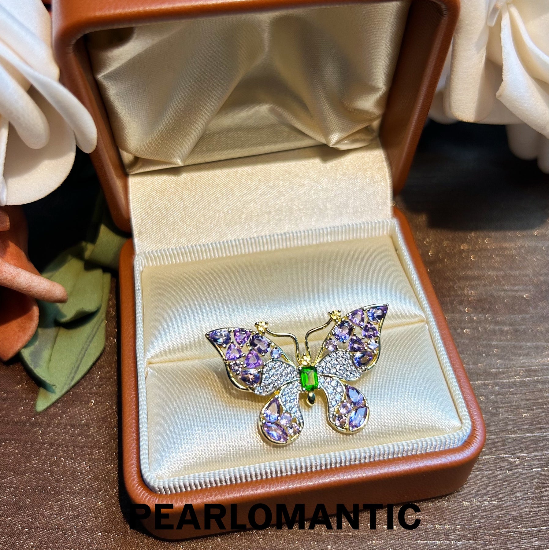 [Designer's Choice] Gorgeous S925 Butterfly Brooch 2.2ct Amethyst and Diopside Inlay