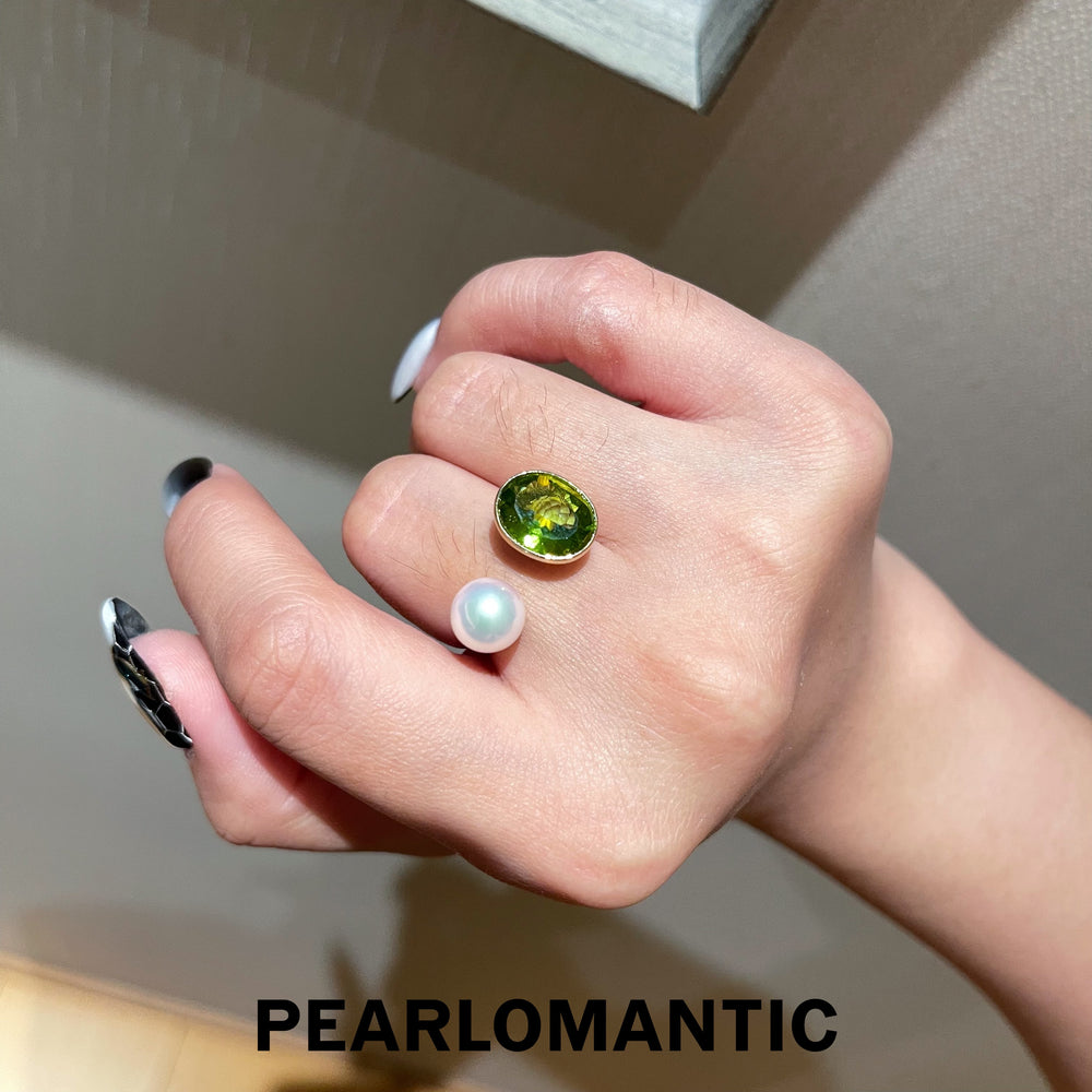 [Fine Jewelry] 18k Gold & Akoya Pearl & Peridot U-Shape Ring Size 6.5