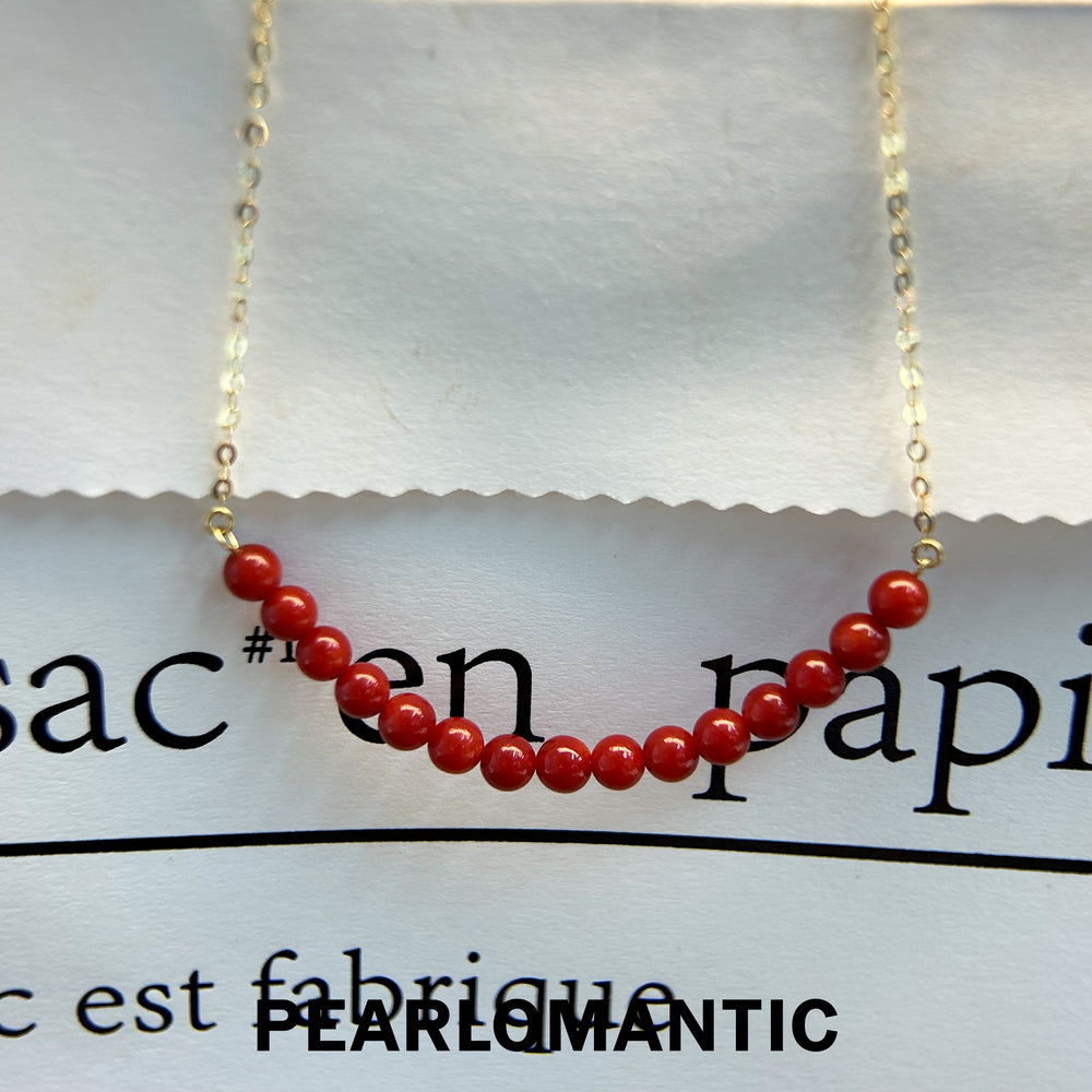 [Fine Jewelry] 18k Gold & Aka Coral Smile Design Pendants w/ 40+5cm Adjustable Chain