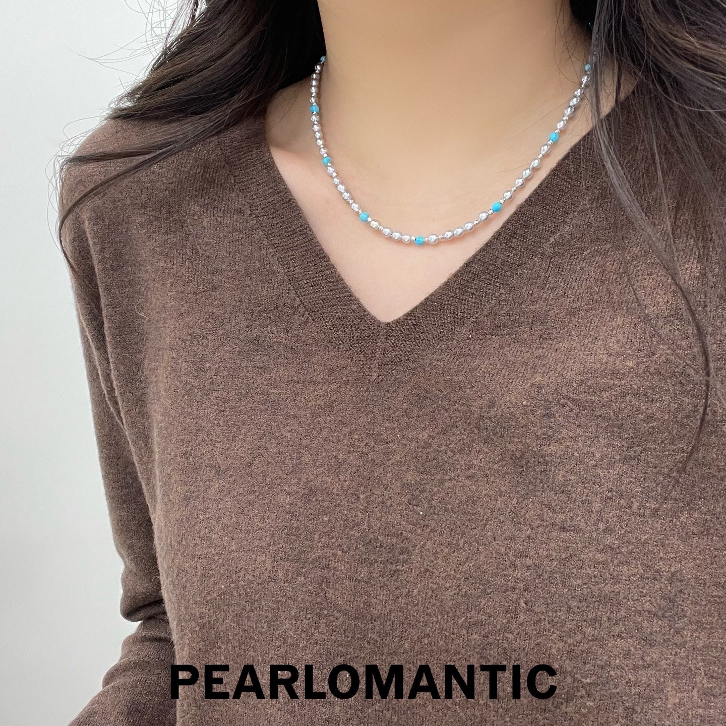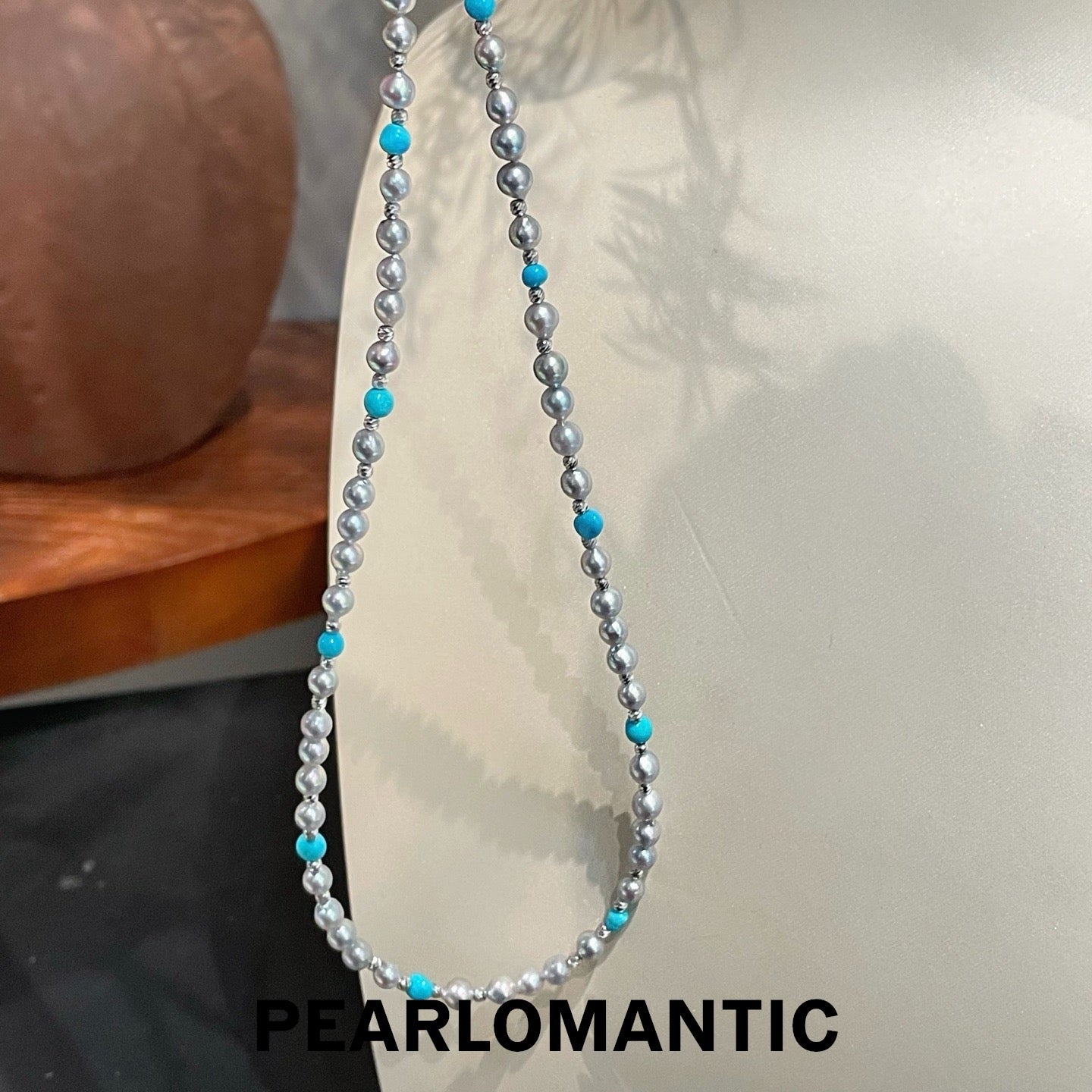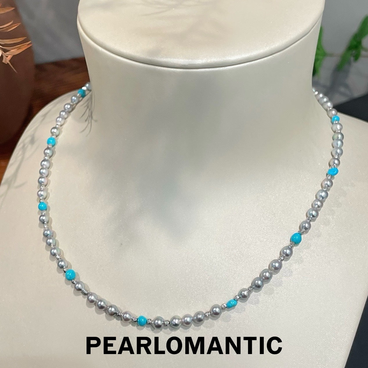 [Designer's Choice] Akoya Baroque & Turquoise S925 Silver Glacier & Sky Adjustable Necklace