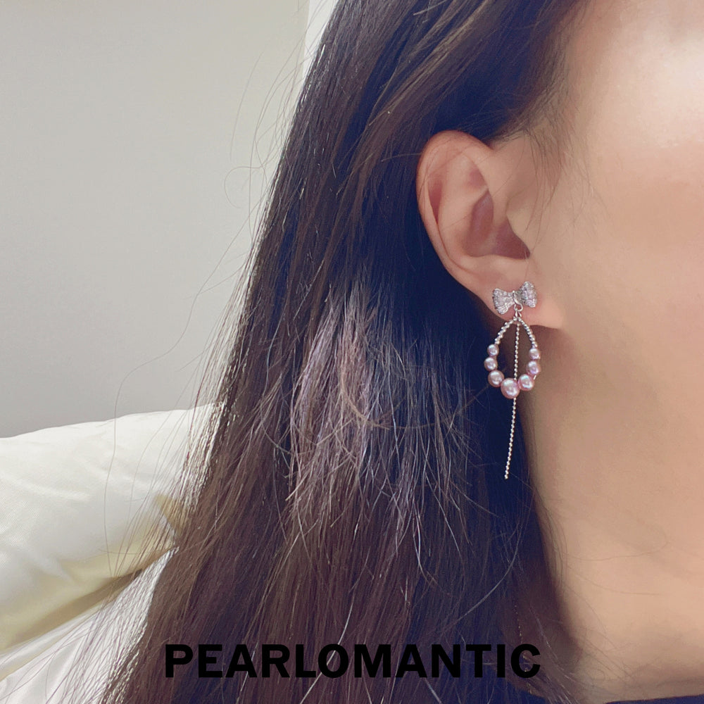 [Everyday Essentials] Freshwater Pearl 2-5mm Purple Bowtie Earrings w/ S925 Silver