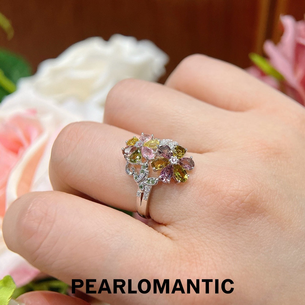 [Designer's Choice] Toumaline Natural Multi-color Kaleido-Bloom Rings w/ S925 Silver