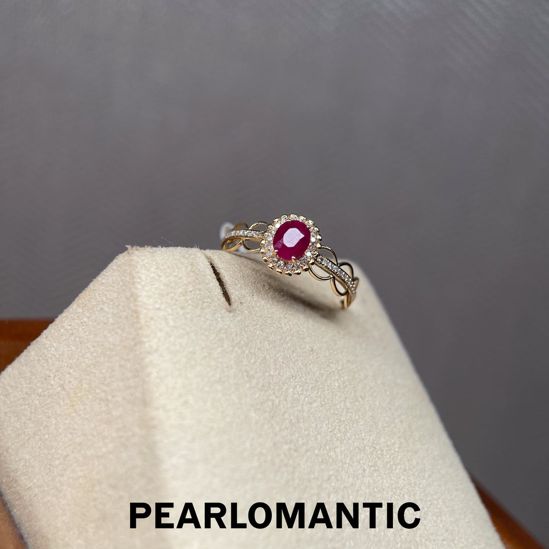 [Fine Jewelry] 18k Gold & Ruby & Diamonds Ring Size US 6 Halo Rings