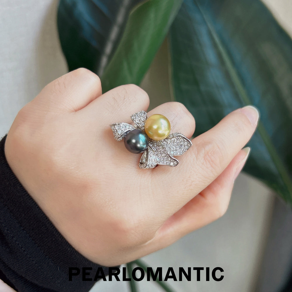 [Designer's Choice] Opulent Tahitian & South Sea Pearl Duo S925 Adjustable Ring
