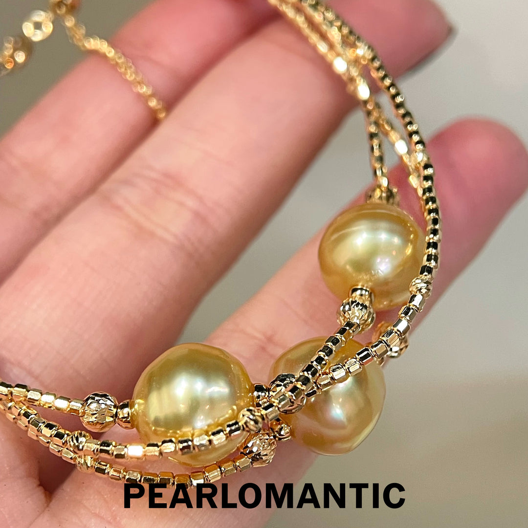 Golden South Sea pearls, often referred to as South Sea pearls, are prized for their rich, natural golden hues. These pearls are cultivated primarily in the warm, pristine waters of the South Pacific. They are renowned for their impressive size, often ranging from 9 to 20 millimeters in diameter. Golden South Sea pearls exhibit a luxurious, radiant luster that sets them apart. Their rarity and exquisite color make them highly sought after in the world of fine jewelry, adding an opulent touch to any piece.