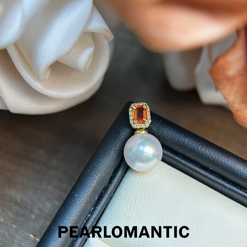 [Fine Jewelry] 18k Gold & Orange Sapphire & Diamond & Akoya Pearl 8-8.5mm Pendants