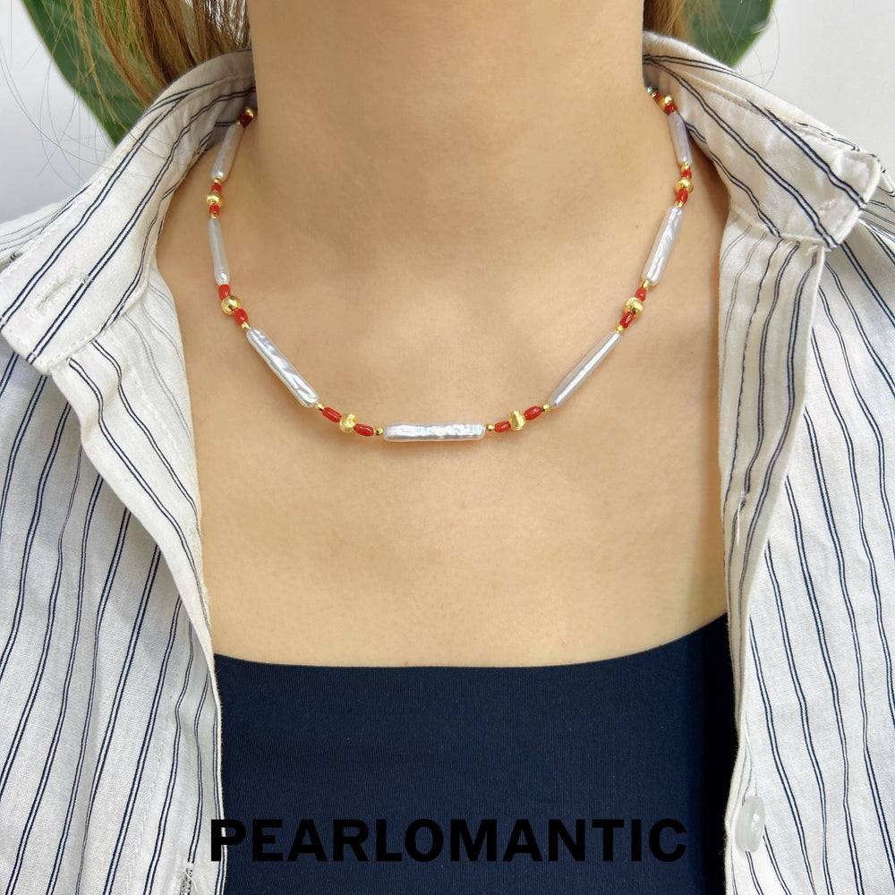 [Designer's Choice] Freshwater Pearl & Coral Scarlet Harmony Necklaces w/ S925 Silver