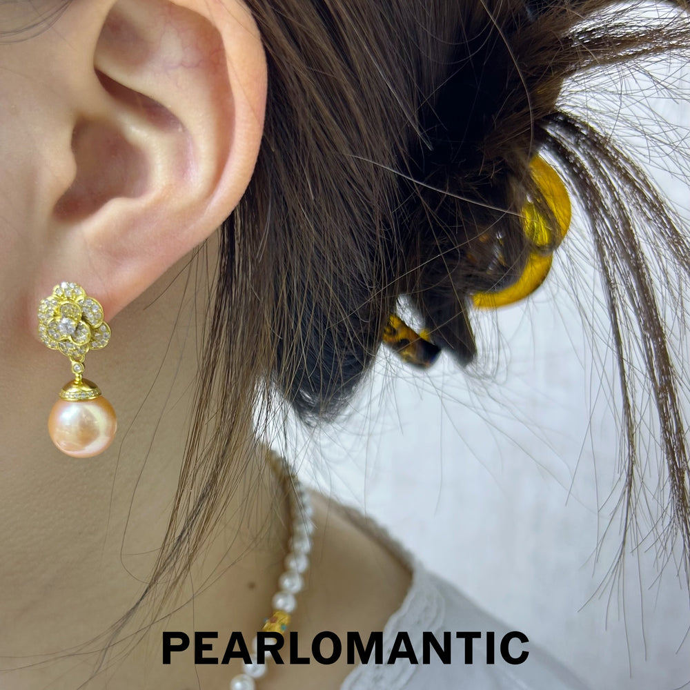 [Designer's Choice] Freshwater Pearl Natural Red Orange Fiery Camellia Earrings