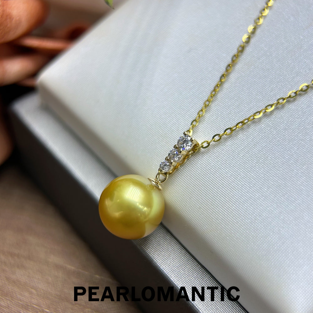 [Fine Jewelry] 18k Gold w/ South Sea Golden Pearl 10.3mm Tri-Zircon Pendant